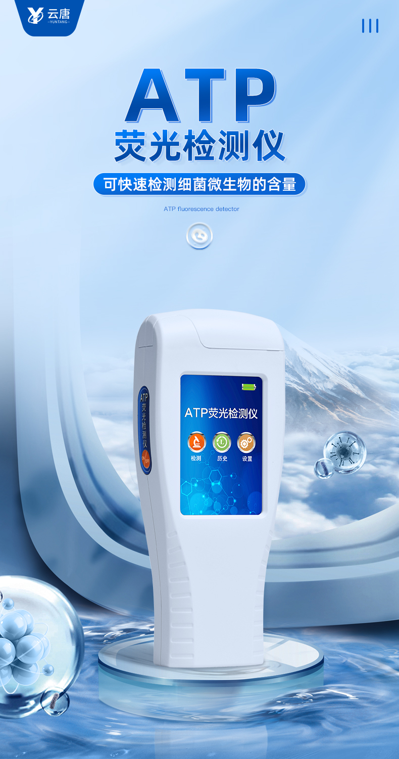 該設(shè)備為全新升級產(chǎn)品,大屏幕觸摸顯示屏,代替?zhèn)鹘y(tǒng)按鍵。操作采用生物化學(xué)反應(yīng)方法檢測ATP含量,ATP熒光檢測儀基于螢火蟲發(fā)光原理,利用“熒光素酶—熒光素體系”快速檢測三磷酸腺苷(ATP)。ATP拭子含有可以裂解細(xì)胞膜的試劑,能將細(xì)胞內(nèi)ATP釋放出來,與試劑中含有的特異性酶發(fā)生反應(yīng),產(chǎn)生光,再用熒光照度計檢測發(fā)光值,微生物的數(shù)量與發(fā)光值成正比,由于所有生物活細(xì)胞中含有恒量的ATP,所以ATP含量可以清晰地表明樣品中微生物與其他生物殘余的多少,用于判斷衛(wèi)生狀況。