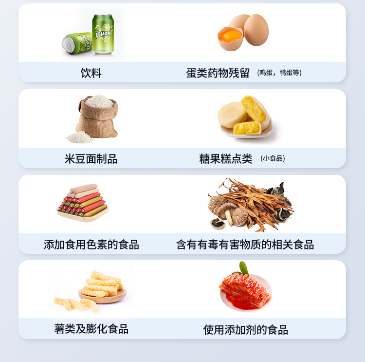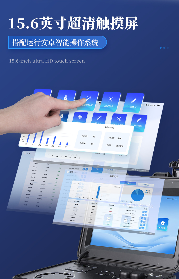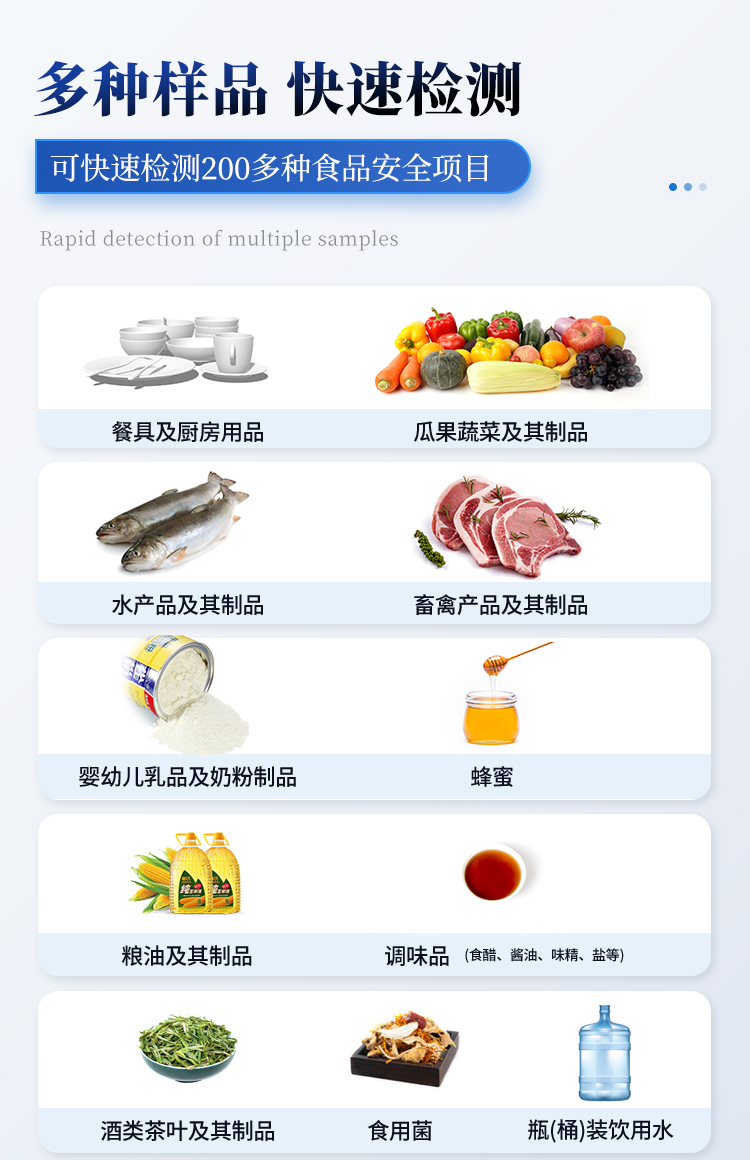 儀器采用手提式一體化系統(tǒng)檢測技術(shù),將分光光度模塊、膠體金檢測模塊、新型農(nóng)殘檢測模塊、數(shù)字化管理模塊、無線通訊模塊高度集成于一體,支持檢測200種食品安全檢測項目,同時預(yù)留升級檢測方法。 | 儀器檢測模塊標(biāo)準(zhǔn)化、智能化,檢測項目可隨意自由組合。檢測箱體內(nèi)置多個標(biāo)準(zhǔn)檢測單元,檢測模塊可以調(diào)整配置。 | 顯示屏幕:儀器采用10.1英寸液晶觸摸屏顯,搭配運行安卓智能操作系統(tǒng),主控芯片采用ARM Cortex-A7,RK3288/4核處理器,主頻1.88Ghz,運轉(zhuǎn)速度更快速,性能更強(qiáng)。 | 檢測通道:≥12通道;采用精密旋轉(zhuǎn)比色池設(shè)計,使用光源芯片一致,可以解決各通道間由于光源芯片不同帶來的檢測結(jié)果誤差問題,檢測結(jié)果更加精準(zhǔn),1-12通道間誤差0.1%,***:**202022821055.2。 | 儀器光源:高精度進(jìn)口四波長冷光源,每個通道均配置 410、520、590、630nm 波長光源,標(biāo)配**的光路切換裝置,專利光路切換功能可實現(xiàn)*多64波長,并且所有檢測項目可實現(xiàn)所有通道同時檢測 | 設(shè)備具備開機(jī)自動校準(zhǔn)及一鍵校準(zhǔn)功能,確保檢測數(shù)據(jù)結(jié)果準(zhǔn)確。 | 通訊接口:配備無線通信模塊、4G(APN)通訊模塊、藍(lán)牙傳輸,同時具有雙USB接口以及RJ45網(wǎng)線接口,可以多方式實現(xiàn)數(shù)據(jù)保存及數(shù)據(jù)傳輸。 | 存儲方式:支持U盤存儲,標(biāo)準(zhǔn)USB接口,免驅(qū)動安裝。檢測結(jié)果存儲容量20萬條以上,可生成Excel表格進(jìn)行拷貝,并具有登錄保護(hù)功能。 | 智能化操作系統(tǒng): 操作系統(tǒng):可在同一檢測界面自動對應(yīng)相關(guān)檢測通道,一次性選擇1-12個樣品名稱,無需退出界面,節(jié)省操作時間。檢測通道可以分別打開與關(guān)閉并對檢測通道屬性和樣品信息進(jìn)行編輯,例如送檢單位、人員,檢測人員等,打印時一并顯示。 數(shù)據(jù)集成系統(tǒng):設(shè)備首頁自動統(tǒng)計檢測數(shù)據(jù),包含:周檢測數(shù)據(jù)、月檢測數(shù)據(jù),全部檢測總數(shù)量,均包含檢測總數(shù),合格數(shù),不合格數(shù),以及相關(guān)柱形分析圖,對各項檢測數(shù)據(jù)清晰掌握,無需電腦查詢,更加快捷直觀。 數(shù)據(jù)庫系統(tǒng):具有多品類多種類樣品菜單功能,并且構(gòu)建了完善的檢索、修訂功能。食品庫涵蓋多種菜單庫100多種蔬菜名稱,可按需添加或刪除、編輯蔬菜名稱;不同的檢測通道可同時檢測不同的樣品,產(chǎn)品數(shù)據(jù)庫以及歷史檢測記錄支持一鍵檢索功能。 限量規(guī)判系統(tǒng):具有限量查詢、添加物質(zhì)合規(guī)判定系統(tǒng)。檢測出結(jié)果后,系統(tǒng)自動調(diào)用系統(tǒng)數(shù)據(jù)庫中相關(guān)國標(biāo)進(jìn)行比對判定,客觀顯示判定結(jié)果是否合格。 項目預(yù)設(shè)系統(tǒng):儀器具有任務(wù)預(yù)設(shè)模塊,可在樣品送檢前提前預(yù)設(shè)樣品名稱、檢測指標(biāo)、送檢單位、檢測單位等信息,樣品送檢時一鍵調(diào)取保存信息,并可多次調(diào)取,大大提高檢測效率。 數(shù)據(jù)監(jiān)管系統(tǒng):同步對接監(jiān)管平臺,數(shù)據(jù)可局域網(wǎng)和互聯(lián)網(wǎng)數(shù)據(jù)上傳,檢測結(jié)果可選擇直接傳至食品安全監(jiān)管平臺。進(jìn)行區(qū)域食品安全監(jiān)管及大數(shù)據(jù)分析處理與數(shù)據(jù)統(tǒng)計,檢測區(qū)域食品安全長短期動態(tài),達(dá)到食品安全問題預(yù)估、預(yù)警。 自定義打印系統(tǒng):內(nèi)置熱敏打印機(jī);系統(tǒng)打印格式多樣化,產(chǎn)品合格證(國家農(nóng)業(yè)部標(biāo)準(zhǔn)要求),二維碼,抽樣信息、檢測信息,受檢信息、復(fù)核信息、抽樣日期、檢測日期等信息結(jié)果,可按實際需求自行設(shè)置開啟或關(guān)閉,并完成打印。 | 供電模式:儀器主機(jī)采用一體化防水、抗壓、防撞擊、防腐蝕機(jī)體設(shè)計,可直接使用交流電源;內(nèi)置6ah大容量充電鋰電池,可連續(xù)使用8小時以上,滿足脫電情況下檢測需求。 | 膠體金檢測模塊: 采用雙通道CMOS成像處理技術(shù)及膠體金免疫層析技術(shù),可同時讀取雙膠體金卡數(shù)據(jù),自動采集、處理分析,將檢測結(jié)果顯示,并可根據(jù)參考限值自動判斷檢測結(jié)果,可檢測常見的獸藥殘留、生物毒素、抗生素、違禁添加物等。 探測技術(shù):CMOS成像探測; 檢測通道:3通道,可同時讀取3個膠體金卡數(shù)據(jù); 檢測方式:消線法和比色法; 顯示模式:陰性或陽性; 曲線形式:軌道式自動傳輸掃描方式,可實時顯示金標(biāo)卡圖像,系統(tǒng)自動分析并呈現(xiàn)出CT曲線圖,CT線自動識別,無需手動調(diào)整,完成檢測后自動退出檢測卡。兼容市場上其他金標(biāo)卡,使用耗材不受限制。 | 儀器后期可根據(jù)實際使用需求按項目升級。 |